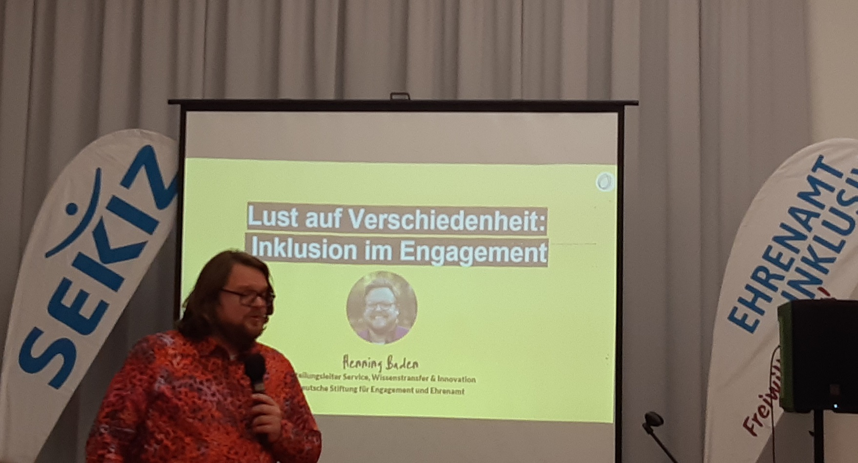 Am Nachmittag fand eine Podiumsdiskussion mit praktischen Beispielen für inklusives Ehrenamt statt. Vertreter*innen von Kultür Potsdam (Neue Kulturwege e. V.) berichteten, dass Inklusion von Anfang an mitbedacht wurde. Selbst bei bestehenden räumlichen Barrieren wurden zusammen mit ehrenamtlich Tätigen, die eine Behinderung aufweisen, Lösungen erarbeitet. Dabei wurde deutlich, dass Inklusion ein fortlaufender Lernprozess ist.